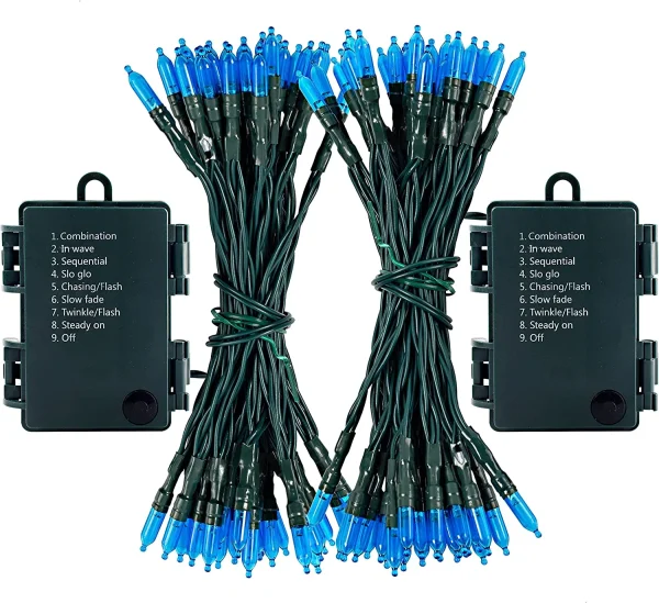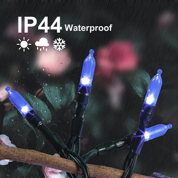 • LED Outdoor String Lights has 2 packs of 50 counts of blue LED bulbs and measure 17.3ft each set. The bulb’s interval is 4 inches and its individual size is 3mm*16mm.
