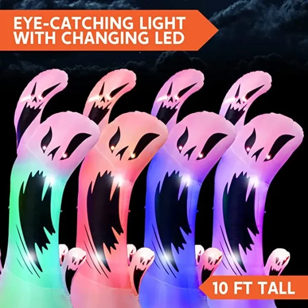 - ENDLESS FUN. Our scary inflatable halloween decorations features built-in multicolored flashing LED lights. This halloween ghost inflatable will help scare your neighbors and friends and push bubble the party with its creepy light and looking.