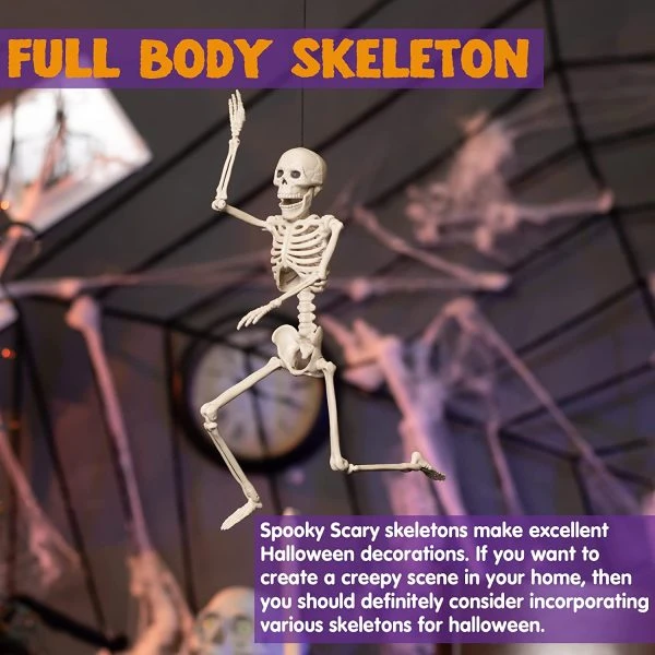 • REAL FUNCTION. Human Skeleton Model Halloween Skeleton Decorations with Posable Joints Skeletons for Halloween Party. It is made of hard plastic and painted to resemble the bone color, has a complete and realistic chest, and full body offers a variety of realistic poses to make each Halloween Party extra festive and spooky.