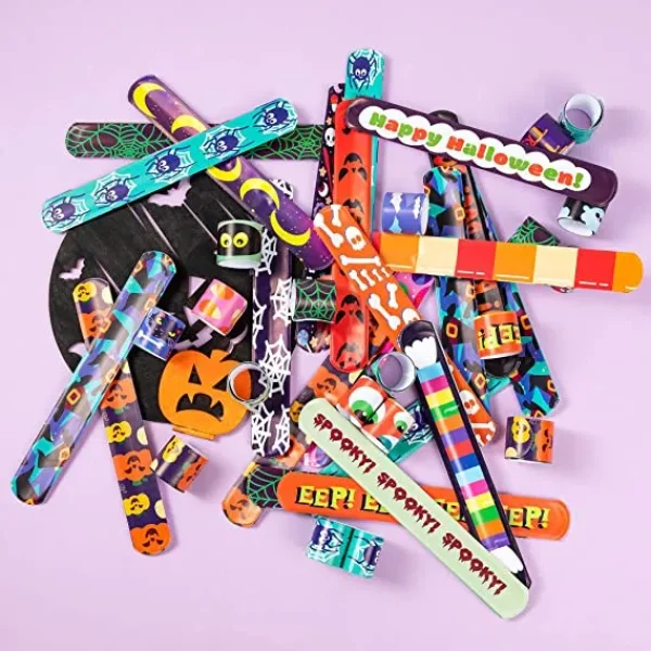 • Halloween Slap Bracelets includes 120 pieces of Halloween slap bracelets which are the perfect non-candy giveaways for giveaways.