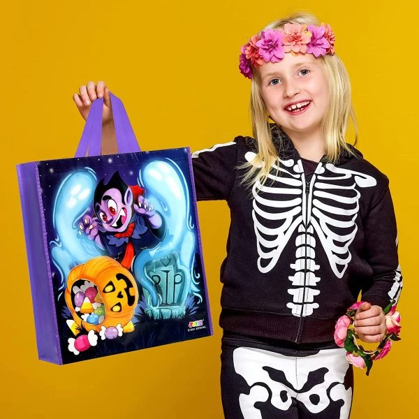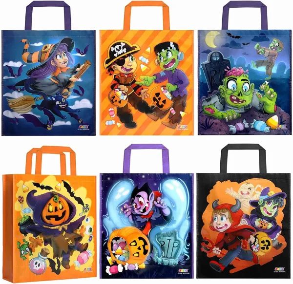 - Our Halloween bag includes 12 pcs of non-woven tote bags. Each bag measures 17″ x 15″ x 4.25″ inch