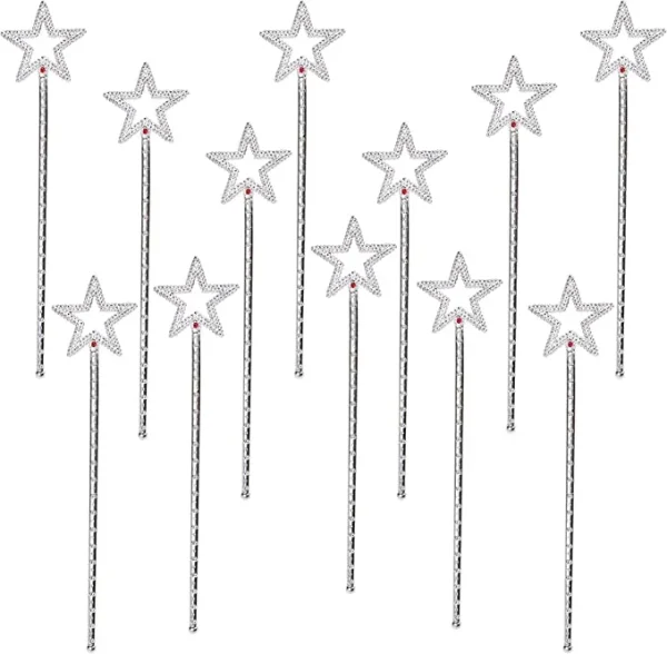 - Our party favor includes 12 pcs of silver fairy princess star wand that measures 13 inches or 34 cm long and 3 inches in diameter.