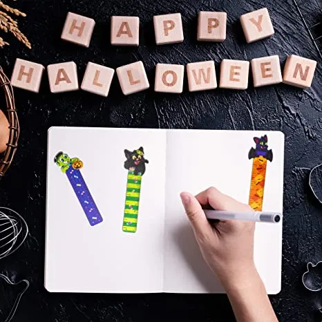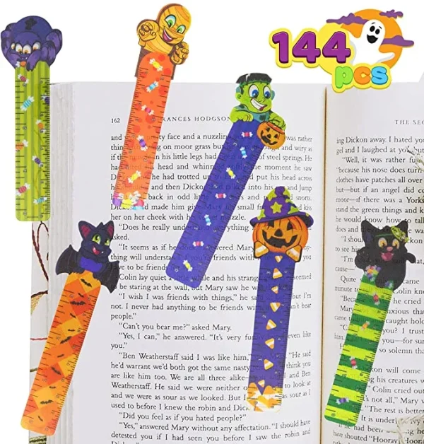 • Ruler Bookmark includes 144 Pcs and Six Different Designs in Mummy, Spider, Pumpkin, Frankenstein, Cat, and Bat.