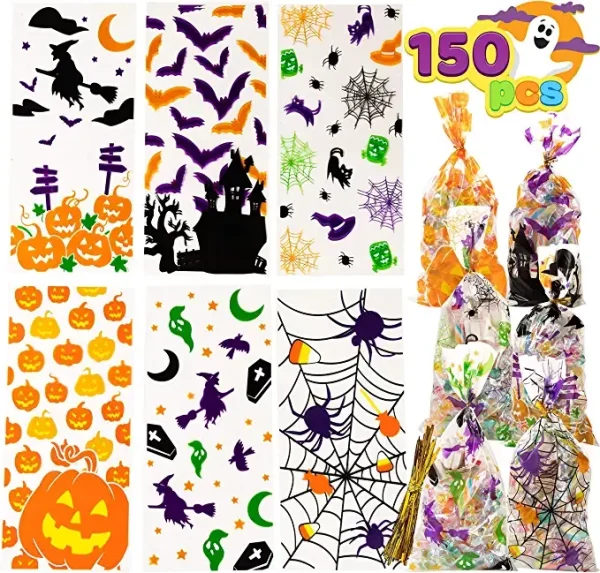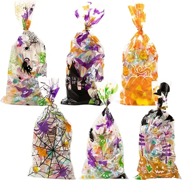 • These Halloween Cellophane Bags are a must-have addition to your Halloween party supplies. Decked out with different Halloween characters, fill these treat bags with candy, cookies, or small toys! Give one to each partygoer at your Halloween party or hand them out to trick-or-treaters!