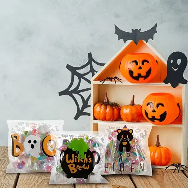 • UNIQUE AND FESTIVE. These Halloween Cellophane Bags are a must-have addition to your Halloween party supplies. Decked out with different Halloween characters, fill these treat bags with candy, cookies, or small toys! Give one to each partygoer at your Halloween party or hand them out to trick-or-treaters!