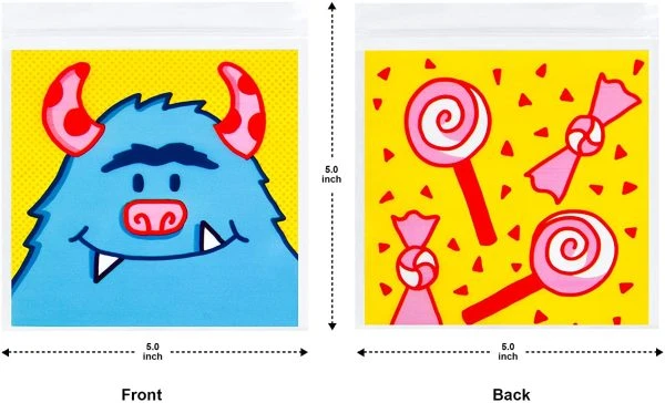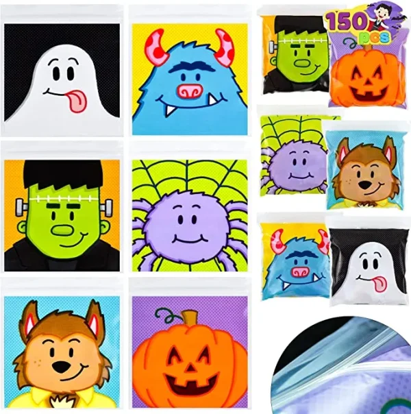 - Our Halloween candy bags includes 150pcs of Halloween cellophane ziplock bags in 6 character designs. Feature super vivid designS that will surely make trick or treating fun, creepy and exciting.