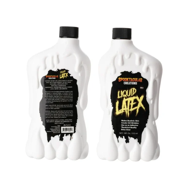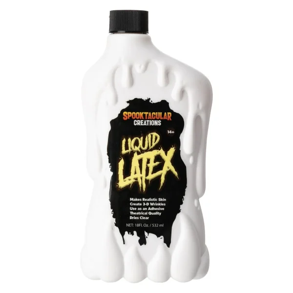 โข Liquid Latex Halloween Makeup comes with 18 oz. Liquid Latex. All-natural latex made from the rubber tree; cruelty-free. It is great for creating frightfully realistic special effects. Use as adhesive. Perfect for making realistic-looking scars, gashes, monster skin, zombie skin, create 3D wrinkles, and other wounds on your skin.