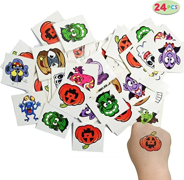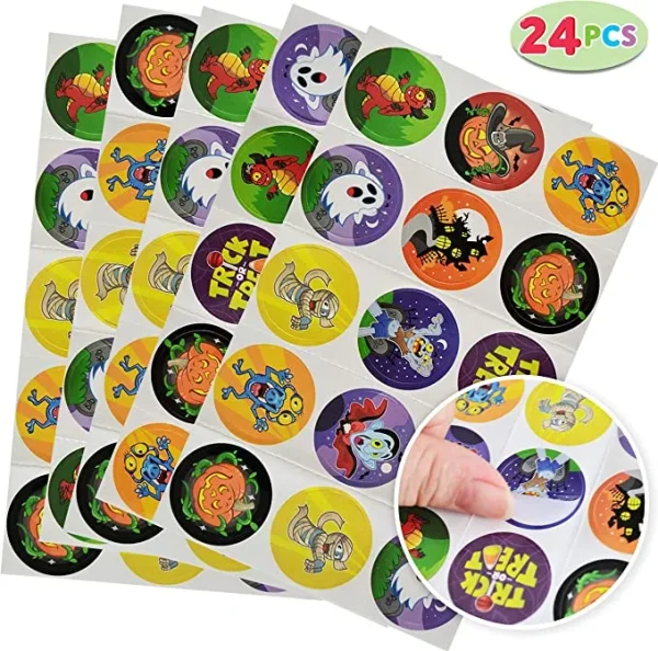 • Stationery Sets come with 24 Packs Assorted Halloween Stationery Gift Set with 6 Designs in Trick or Treat Bags! The whole set comes with 24 Halloween bags, 24 notepads, 24 temporary tattoos, 24 mini pencils, 24 stamps, 24 stickers, and 24 erasers