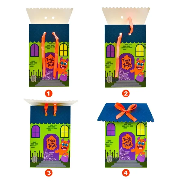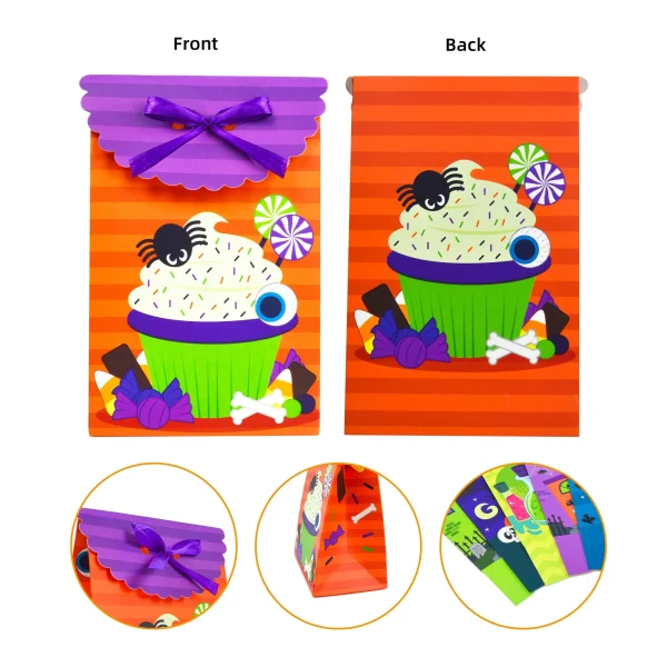 - Our Halloween candy bag includes 24 pcs of the paper flip-over candy bag, a double-sided print that measures 4.6 x 3.85 x 7.2 inches each.