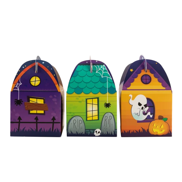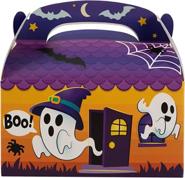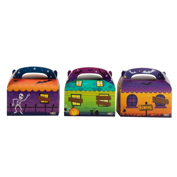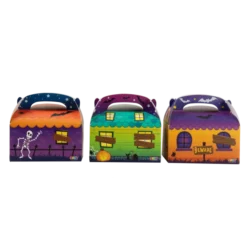 You may proudly display your delectable cupcakes, cookies, cakes, pies, brownies, donuts, truffles, biscuits, or sweets in these frightful, adorable Halloween treat boxes! Treat Boxes can be displayed at your dessert buffet table or distributed to visitors after the Halloween party. The compact size is ideal for packaging sweet treats or non-edible goodies. Each party box has a closed top, which adds to the entertainment for attendees by making what’s inside a mystery. These treat boxes are composed of high-quality cardboard that is both durable for long-term use and lightweight for ease of transport.