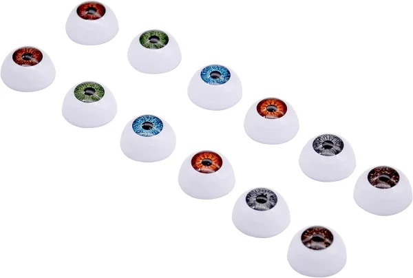 These Halloween eyeballs are half-ball shaped and come in a variety of appealing colors, including brown, blue, green, orange, and gray. 12 pairs, 24 pieces total per set, 6 designs, 2.4cm in length. Any set of eyes can be added to a mask to make a unique Halloween prop. The beautiful and careful radial veins in the eyeballs of the model kits for an eye are lifelike. To achieve the finest glowing effect, expose them to light! All the focus is drawn to the terrifying eyes! With this special bundle, you can give your Halloween a frightening touch while also adding a unique twist. This product is built of high-quality materials and is realistic, long-lasting, and useful.