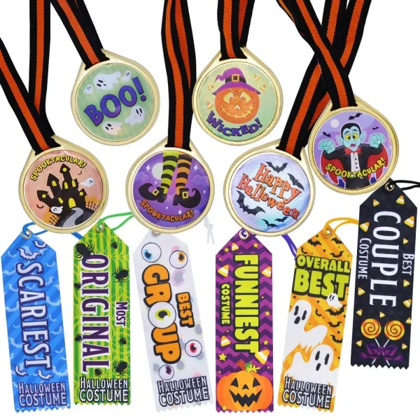 • Halloween Costume Awards Include 12 Pieces of Trophy Ribbons and 12 Pieces of Medal Trophies.