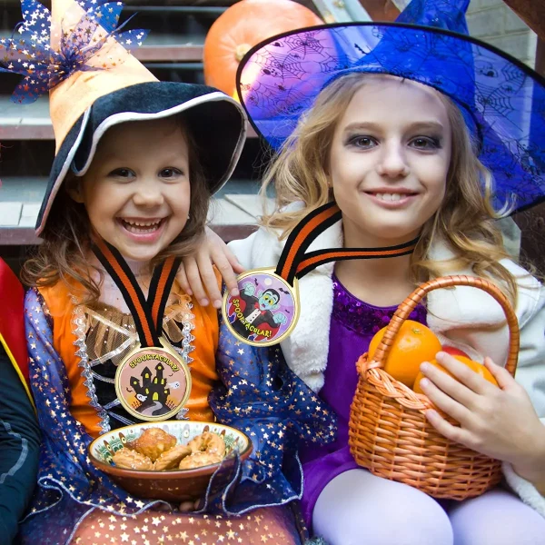 The Halloween Awards are the perfect way to reward your party guests with a fun and satisfying prize! Each set of halloween toys includes 12 pieces of different size ribbons in silver, gold, and orange colors. The Set also includes 12 metal medal trophies decorated with bats, ghosts, and pumpkins. All ribbons and medals are made of plastic and are durable enough for many uses. The perfect prize for a Halloween party or any other happy occasion! The high-quality plastic medal trophies and ribbons are special and cute designs suitable for everyone. Long-lasting and durable, this set is a perfect value pack for your Halloween parties. This End of the Year Awards Set is a great way to reward children for their hard work all year long. The ribbons can be used as home decoration or party favors too. Give the kids this easy-to-hold and adorable Halloween treats, Halloween party prizes, Halloween giveaways, and Halloween party rewards!