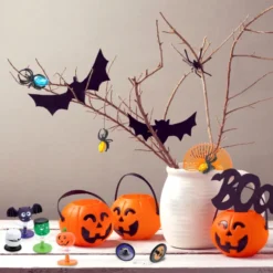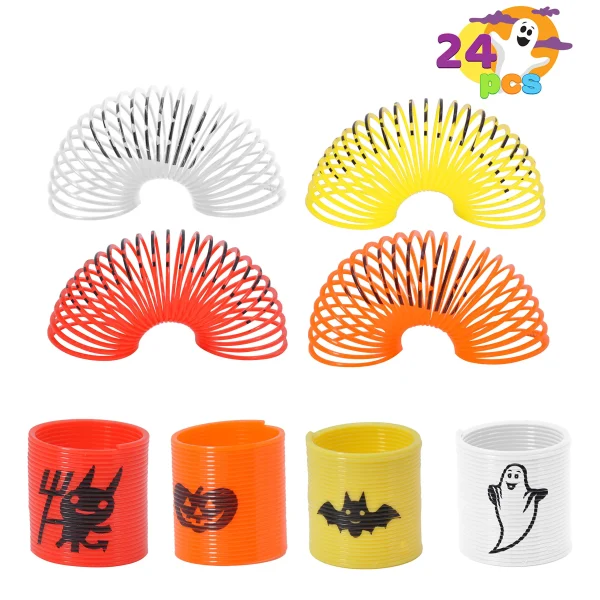 • Includes 24 mini pumpkin buckets, 24 springs, 24 jumping toys, 24 push bubbles, 24 spider rings, and 24 vampire fangs.