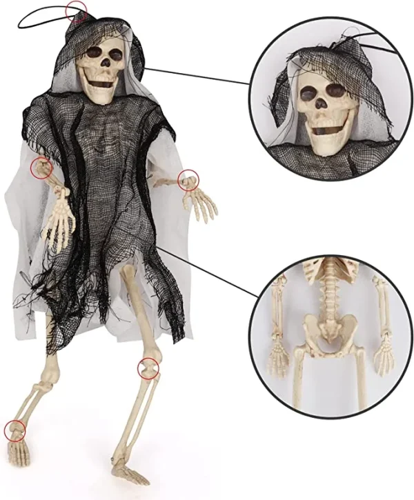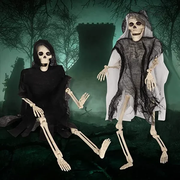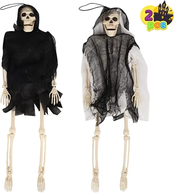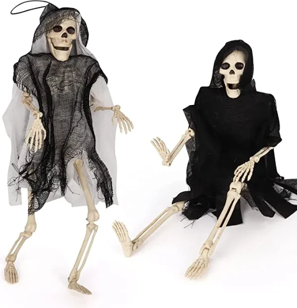 - Our set of poseable skeleton grim reapers comes in 2 pieces, white and black, measuring 16 inches each.