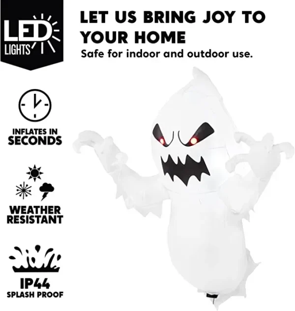 • Ghost Flying with our 3.5 Feet Tall Halloween window decorations that will add some spooky touch and festival fun to your yard with these blow-up Halloween decorations outdoors. Inflatable comes with a screw sucker, fastened ropes, and built-in sandbags.