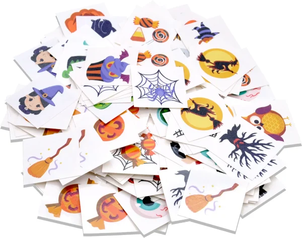 • These Halloween Tattoos provide maximum and ensured entertainment to any kind of Halloween party by adding a dash of art style and color. Perfect for kids’ Halloween party supplies, Halloween Parties Prizes, Trick or Treat, Halloween Giveaways Goody, Halloween Goodies Toys, Halloween Gift Novelty Toys, Halloween Goody Bag Fillers, Classroom Games, Halloween Treats for Kids, and Halloween Piñata Filler.