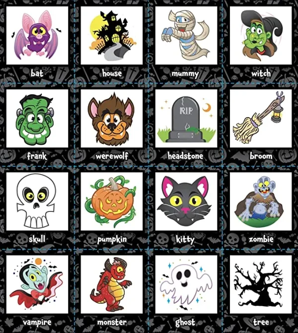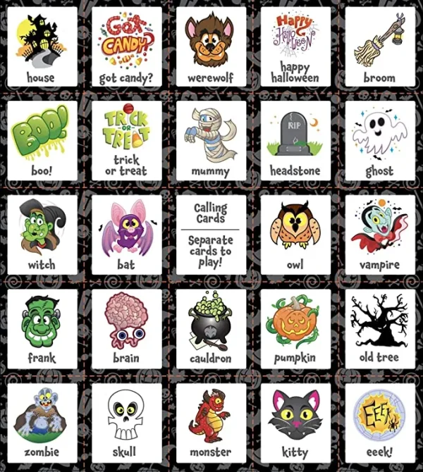 • 16 Cards per Set for Up to 16 Players. Unique Festive Halloween Theme Pattern Design on Each board.