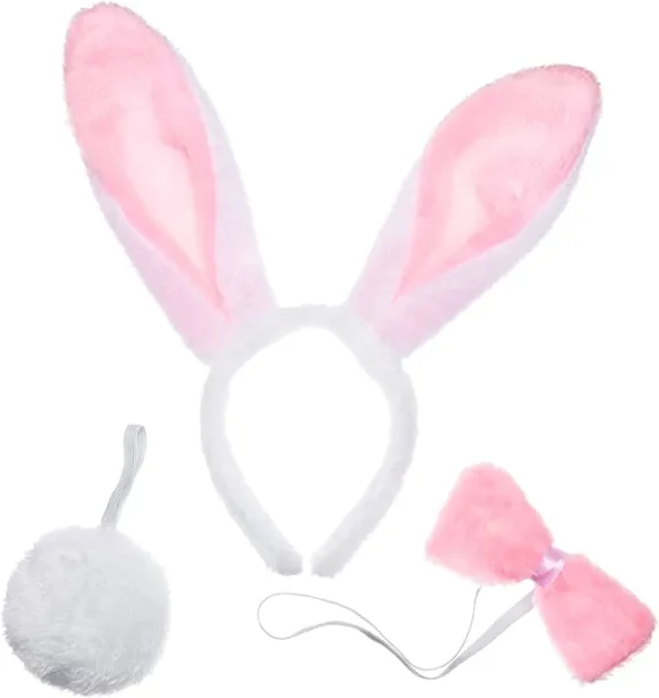 • Bunny Accessories Halloween Includes fluffy bunny ears headband, bow tie, and bunny tail, in a very cute and adorable style. This is great for your Halloween parties, it is surely a great addition to make your get-up extra fluffy and cute.