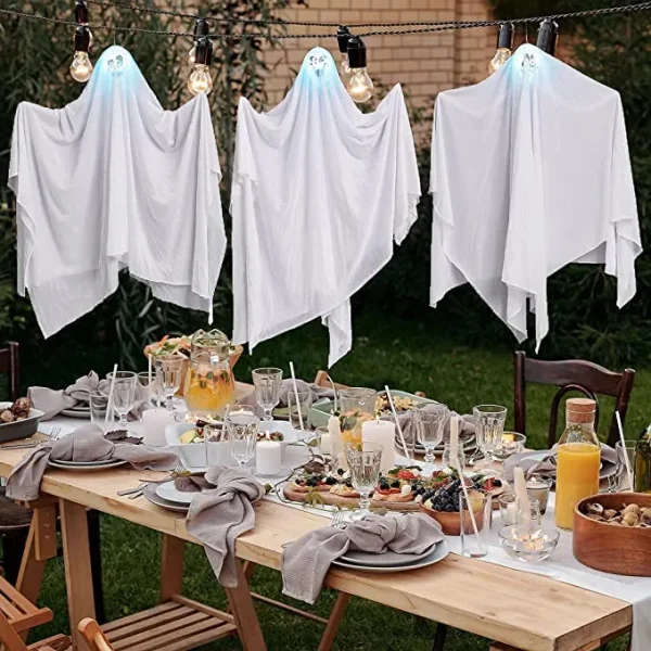 • Halloween Light up Ghost includes 3 packs of light-up ghosts. Each measures a length of 35.5 inches.
