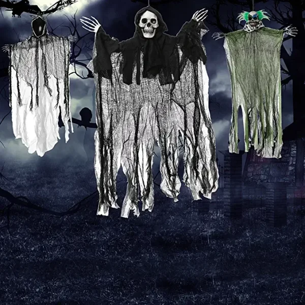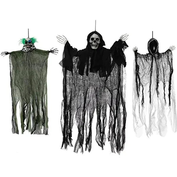- Our Halloween decor includes 1 pack of medium skeleton ghost (31 inches), 1 pack of a little clown (17.5 inches), and 1 pack of little faceless ghost (16 inches)