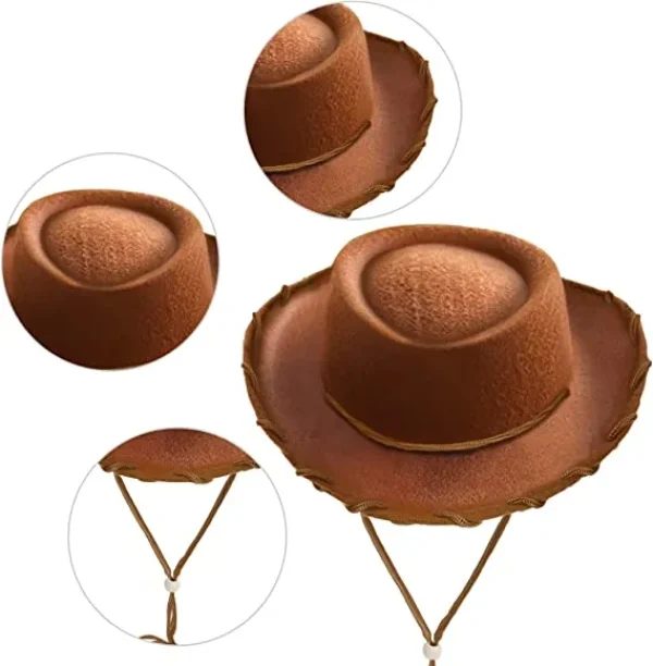 • Cowboy Hat for Kids features a felt texture. This set comes with 3 felt cowboy hats.