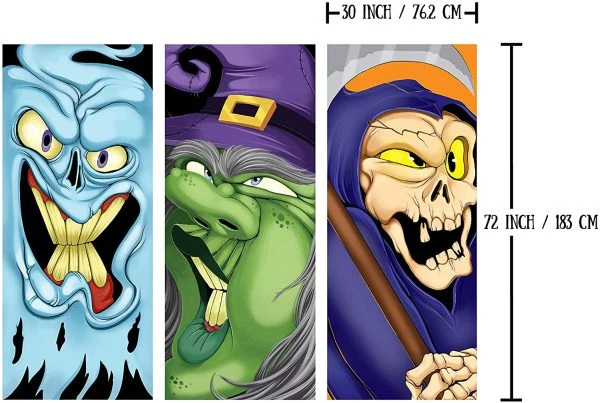 - Our 3 pcs scary Halloween door cover comes with 3d design, measuring 30″ x 72″ for each piece perfect for Halloween decoration.
