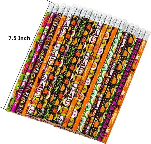 • Halloween Pencils Bulk includes 48 Pack with 7.5 inches in size and has 12 designs including pumpkin, bat, tomb, witch, skeleton, spider, mummy, and eyes.