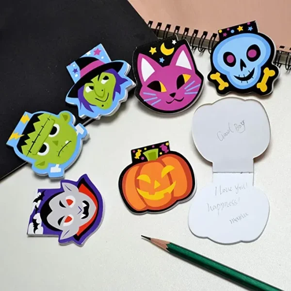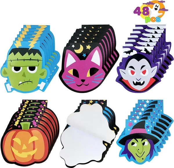 • Halloween Party Favor comes in 48 pieces of notepads with 6 spooky designs: pumpkin, cat, witch, vampire, skull, and a monster. All of these items are featured with classic Halloween patterns, which will enhance the Halloween festival atmosphere!