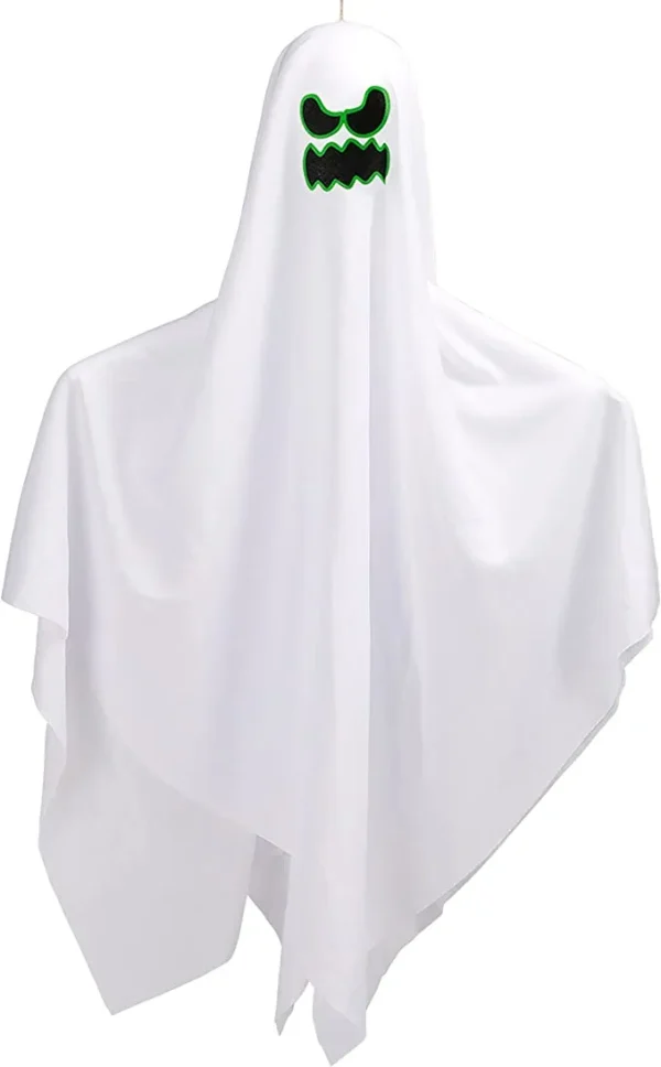 The hanging ghost has an exceptional ghost design with scary facial reactions in black that glow in the dark, making them ideal props for creating a haunting atmosphere at your Halloween party or other spooky-themed festivities. Ghosts hanging halloween decorations have two stretchable and poseable arms that enable you to pose two hands in any fashion you would like. Simply hold the shoulder and tenderly twist it to adjust the arms. There are four ghosts in total, each with a different menacing facial expression. They will undoubtedly make your Halloween trick-or-treat night more enjoyable and thrilling.