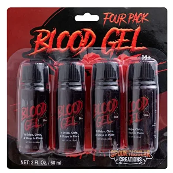 • Fake Blood For Halloween includes 4 Bottles of 2 oz. Fake Blood Gel. Our fake blood features an incredibly vibrant blood red color that looks like the real thing. It is great for creating frightfully realistic special effects.