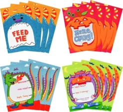 - Our 60 pieces Halloween see-through candy treat bags in 4 cute Halloween monster designs: monster furry friend, pumpkin, troll, and dragon measures (12.5″x7″).