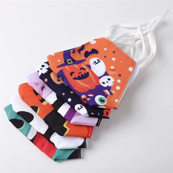 • Halloween Reusable Face Mask includes 6 pcs Halloween Different Design Pattern, 7” wide from ear strap to ear strap and 5” tall at the widest point.