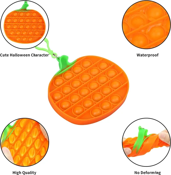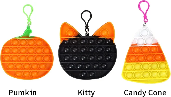 - Our Halloween party favor includes 6 pcs Halloween tie dye bubble toy with 3 Halloween characters designs (pumpkin, kitty, candy cone). Each toy measures 6 inches and is paired with a key chain buckle.
