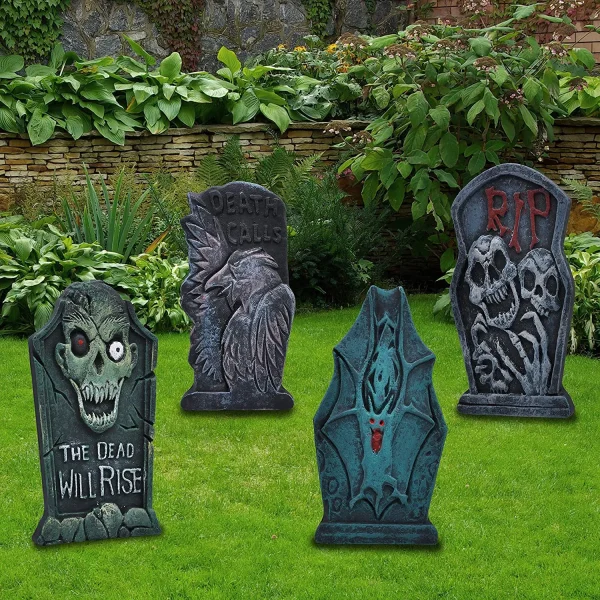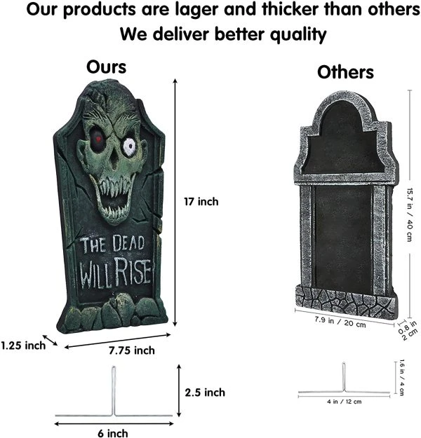 • These 6 tombstones are sturdy, thicker, and bigger than any other brands. Metal Stakes can Secure them better than any other plastic stakes