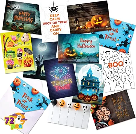 • Our Halloween Card Greeting includes 72 Halloween Cards with 12 Different Designs measuring 9 x 6 inches.