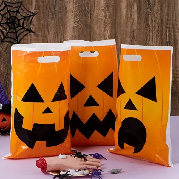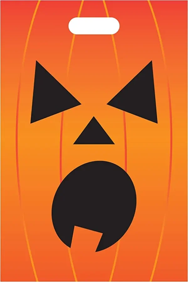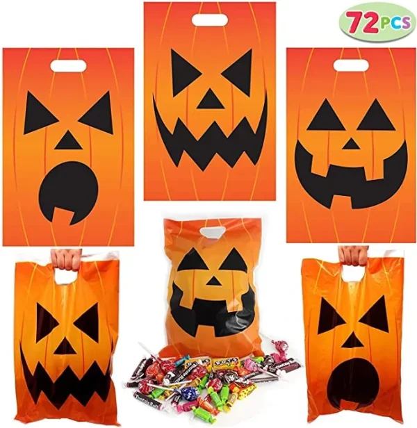 • Halloween Pumpkin Treat Bags features 72 Pieces (11″ X 17″ inches) of Orange Pumpkin Face Halloween Trick or Treat Plastic Candy Bags.