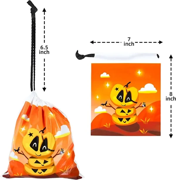 • Our Drawstring Halloween Bags includes a 7*8” double-sided print with different pattern designs These adorable Halloween bags for trick or treating feature a super vivid design that will surely make trick or treating fun, creepy and exciting.