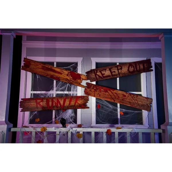 - Our Halloween decor includes 8 pcs haunted window boards, 1 double sided tape. These measures 27.5 x 5.5 inches and are made with PVC plastic.