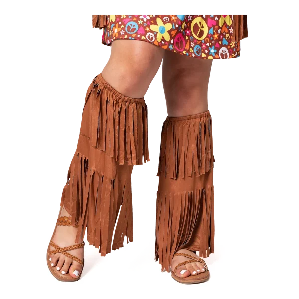 - MUST HAVE. Presenting our Hippie Fringe Boot Covers Costume Accessory Deluxe Set that contains a pair of Knee-high Legwarmers with Multi-layered Leather Fringe. This set is perfect for your Playful look! The Hippie Fringe Boot Covers Costume Accessories are Ideal for Family Fun, Good Decoration for Party. Also a Good Gift for your Lover, Family, Friends and Coworkers.