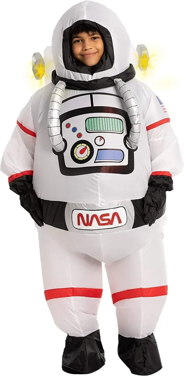 - Full Body NASA Astronaut Deluxe Inflatable Astronaut Dress Costume. Fit for Children Age from 7-10 Yrs. This Full Body Costume Suit is Over 5 ft.