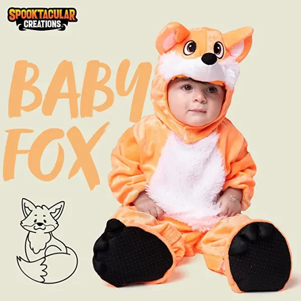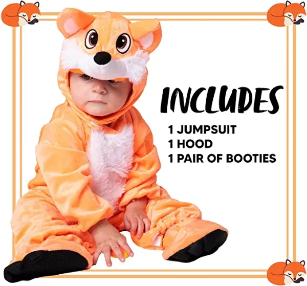 • Baby Fox Costume Includes a Light Orange Fox Hood, Jumpsuit with a Tail, and a Pair of Fox Booties. Your baby will surely love wearing this set. Let your baby wear this Fox costume set and have a party with cuteness overload!