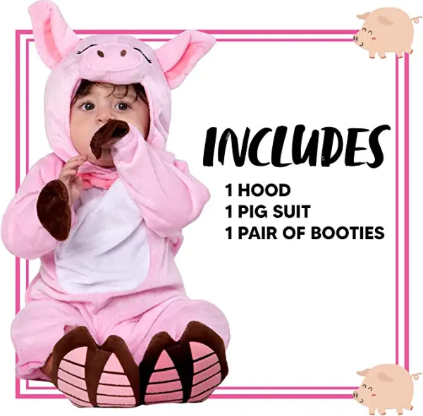 • Baby Pig Costume includes a Piggy Hood, a Piggy Jumpsuit with Attached Tail, and a Pair of Booties! Your kid will surely love wearing this set. Let your baby wear this Pinky Pig Costume set and have a blast!