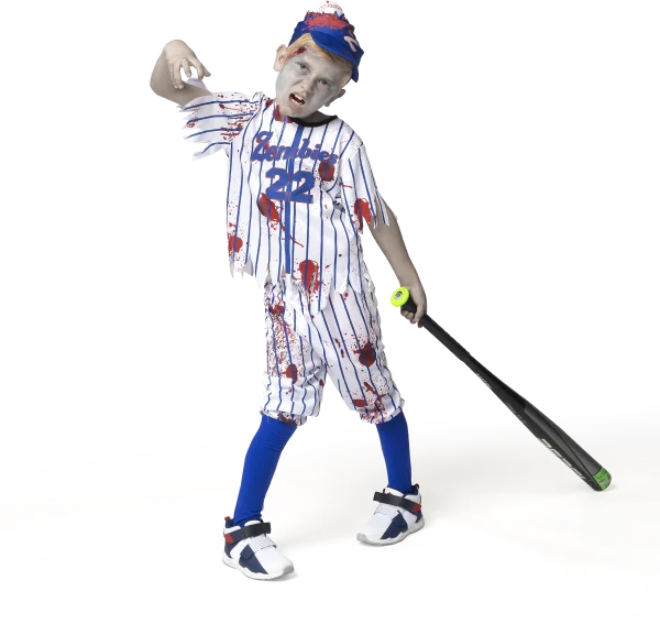 - SPOOK IN STYLE. Our Baseball Zombie for Boys is for Role Play Includes a Cap, a Ragged Jersey printed with blood stains, a Pair of Pants, and a Pair of Socks.
