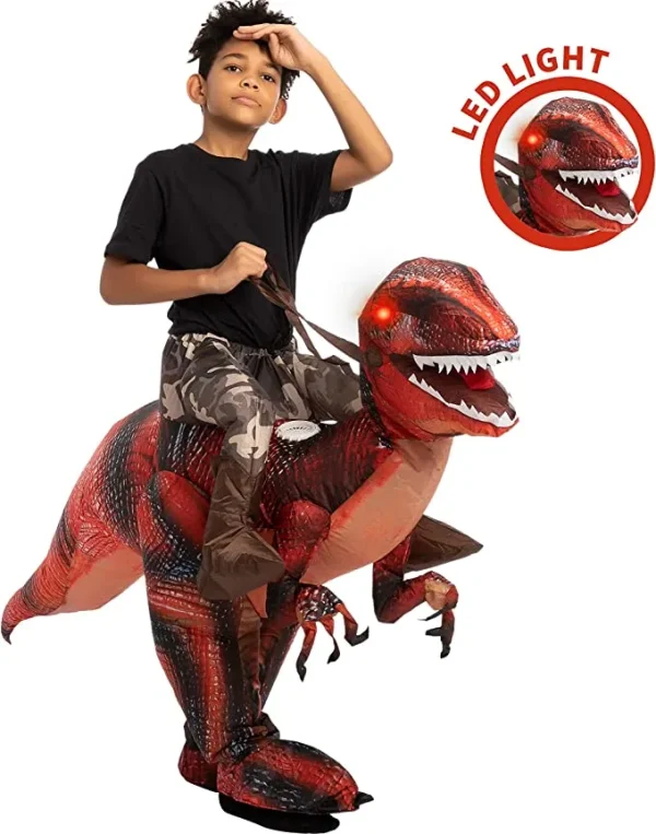 - Ride A Raptor Inflatable Ride-On Dress Costume. Fit for Children Age from 4-6 Yrs. LED lights are built-in.