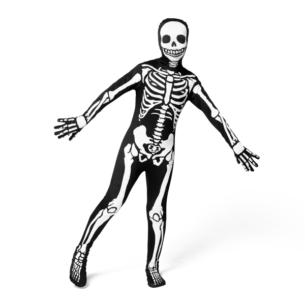- PREMIUM QUALITY. Our skeleton jumpsuit costume is made with 95% Polyester, 5% Spandex, and this Halloween creepy skeleton is made with premium quality materials that will surely last for more Halloweens to come.