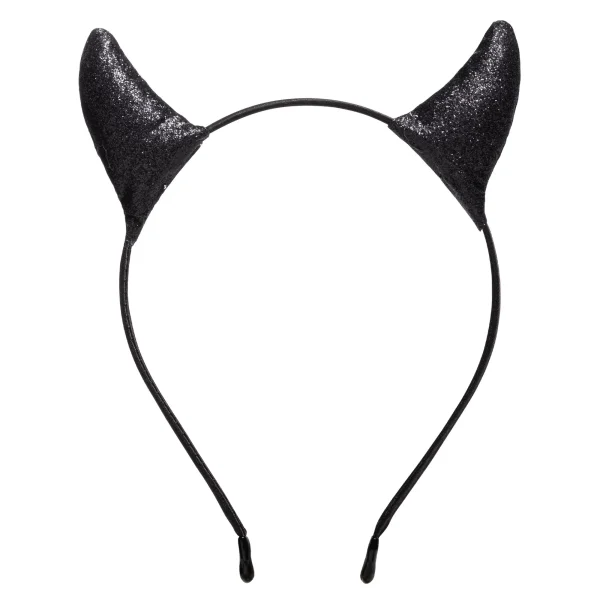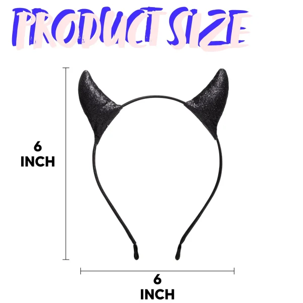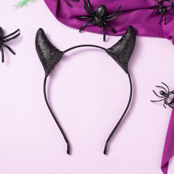 - AWESOME HALLOWEEN COSTUME. Halloween Theme Black Devil Horns Headband include smooth fabric, glitter devil horns on each side, hot and classic devil horns tail style. The shiny devil horns headband design will match for all your Halloween costume parties perfectly!