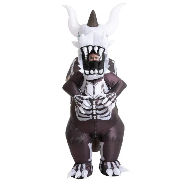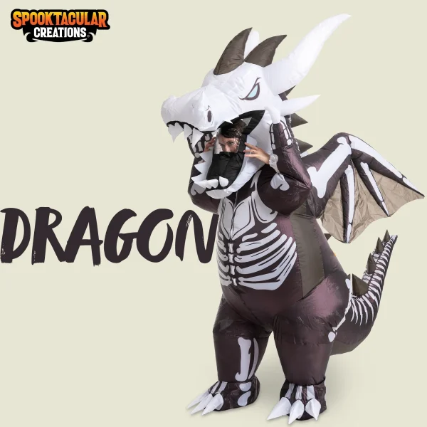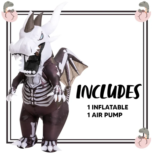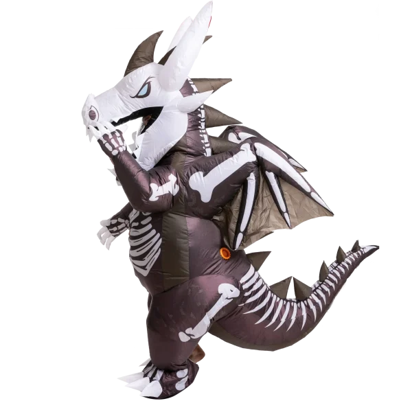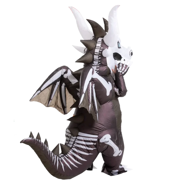 - Size: This inflatable dinosaur costume One size fits most grow up adult. Get this Distinctive Dragon Skeleton Inflatable Costume, it’s designed with a skeleton style of a mythical creature with huge 3D horns, wings, and Superior quality of skeleton printings! Dress up as this amazingly cool full-body costume for Halloween!