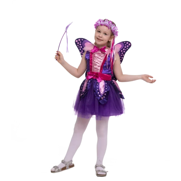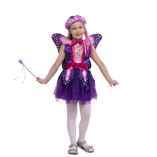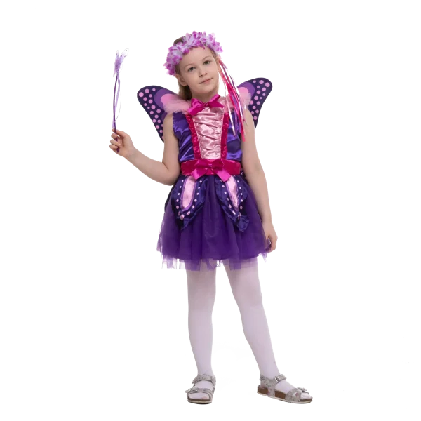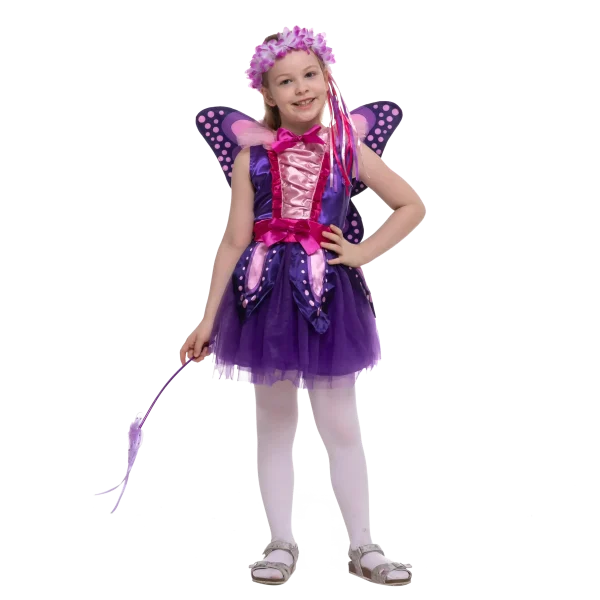 - Includes a Purple Fairy Tutu Costume Dress, Fairy Hair Band, Pair of Butterfly Fairy Wings, and a Fairy Stick.