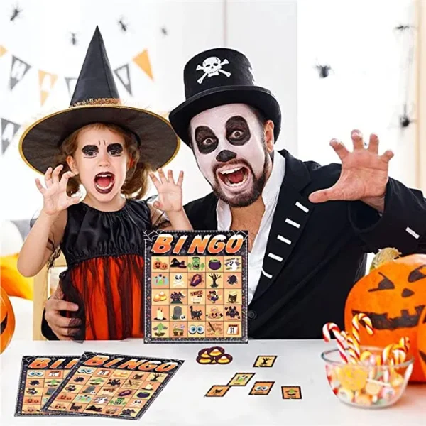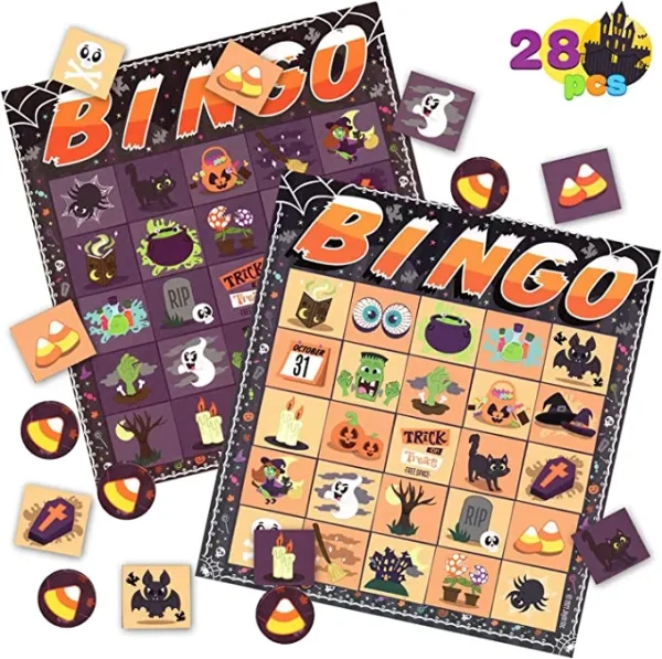 • Our Bingo Card Games set is composed of 28pcs Halloween bingo cards for kids. Each card measures 6.25” X 6.75. The cute design and fun playing options make these bingo game cards a must-have for any Halloween-themed party.